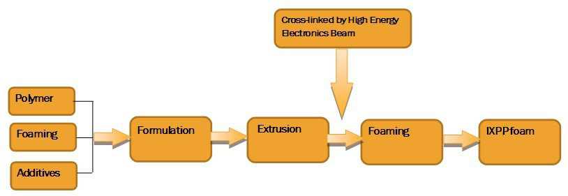 IXPP is a radiation-cross-linked, semirigid, closed-cell, long sheet foam. Its lightweight, heat-insulating, shock-absorbing,